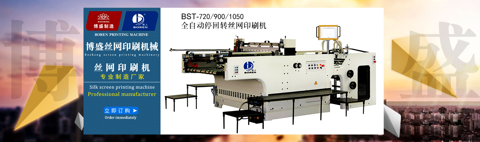瑞安市博盛絲網(wǎng)印刷機械廠是一家專業(yè)集生產加工,經營批發(fā)的私營獨資企業(yè)。制造各類全自動絲網(wǎng)印刷機、卷對卷全自動(無紡布)網(wǎng)印機、全自動卷筒式網(wǎng)印橫切一體機、半自動平升式、斜臂式微電腦控制精密網(wǎng)印機、紫外線(UV)光固機、絲印真空曬版機、烘版機、熱風烤(烘)箱、組合式(IR)紅外線烘道、機械式精密... 查看詳情>>
